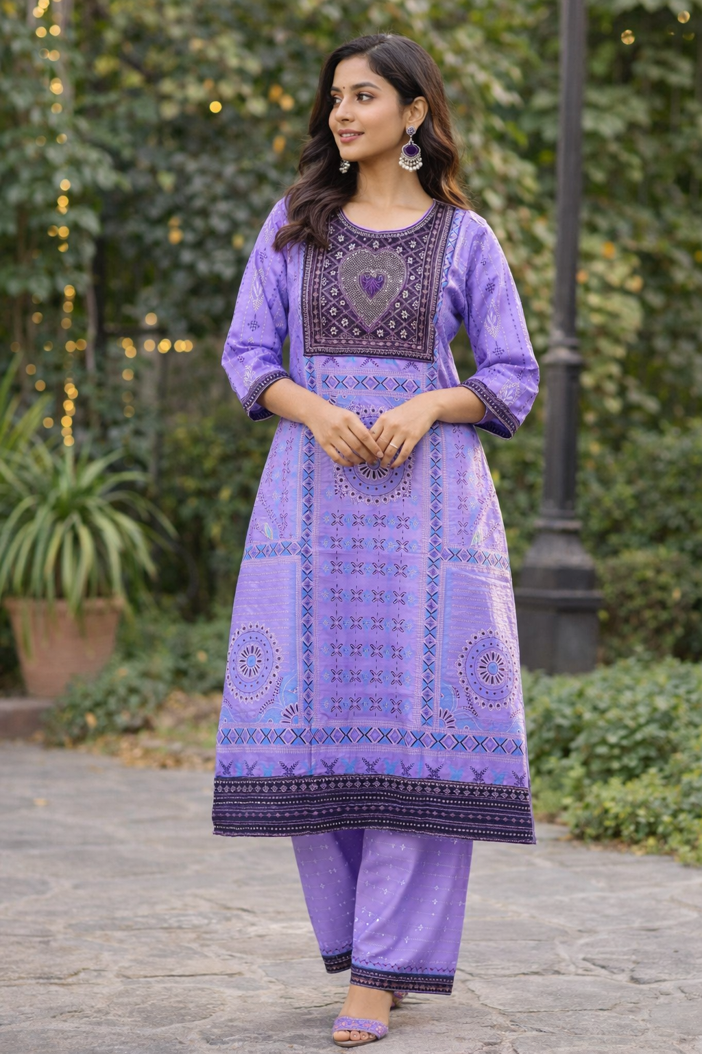 Premium quality cotton fabric দিয়ে তৈরি এই Lavender Grace 2-Piece ড্রেসটি দৈনন্দিন ব্যবহার ও casual outing-এর জন্য একদম পারফেক্ট। সুন্দর ল্যাভেন্ডার কালারের উপর elegant print ও neckline-এর stylish design ড্রেসটিকে দিয়েছে আলাদা সৌন্দর্য। কাপড়টি হালকা, breathable এবং সারাদিন আরামদায়ক।