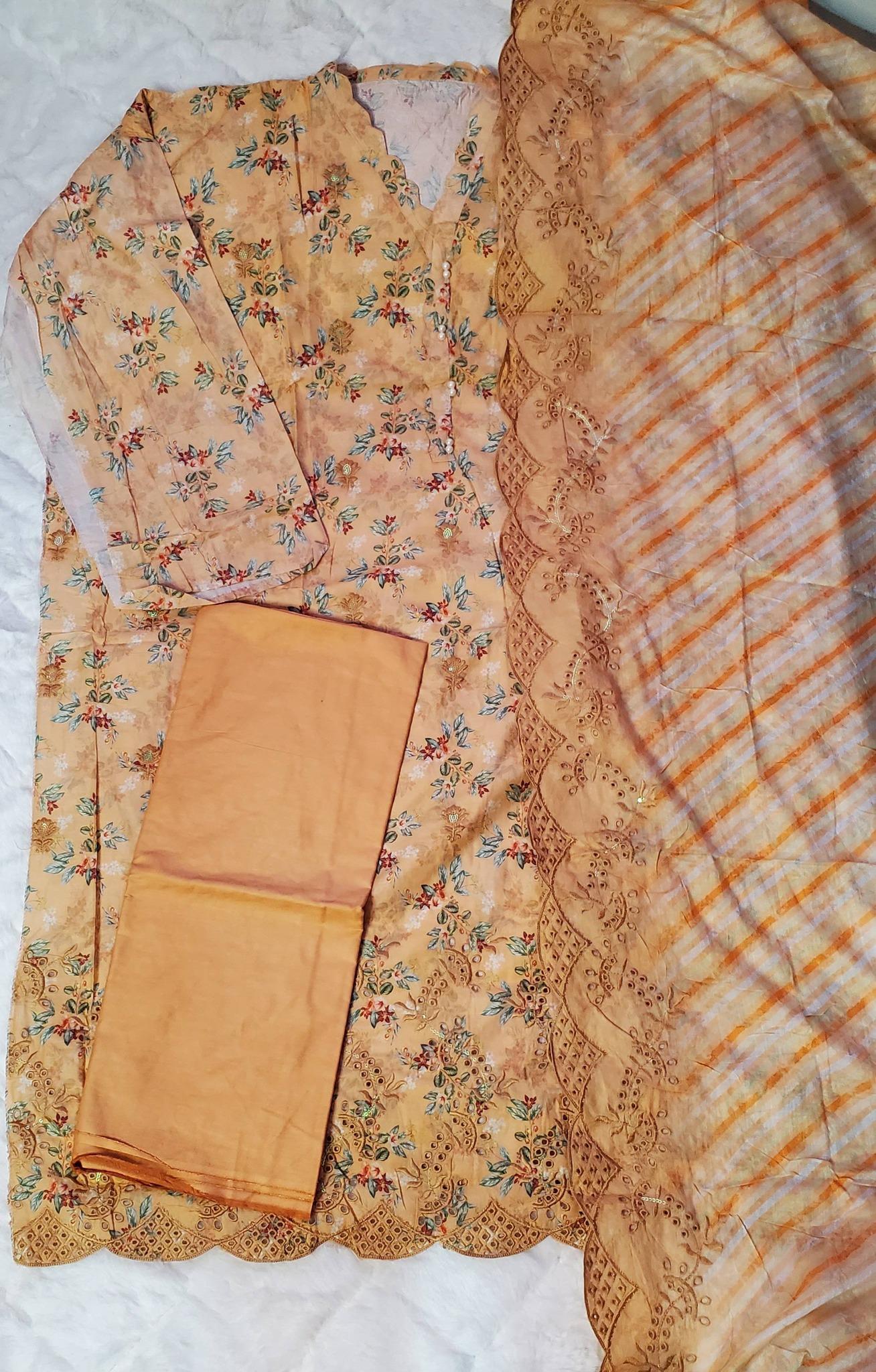 ক্যাটাগরি: Three Piece (3pcs), Pakistani Inspired, Sadabahar Collection, Unstitched Fabric